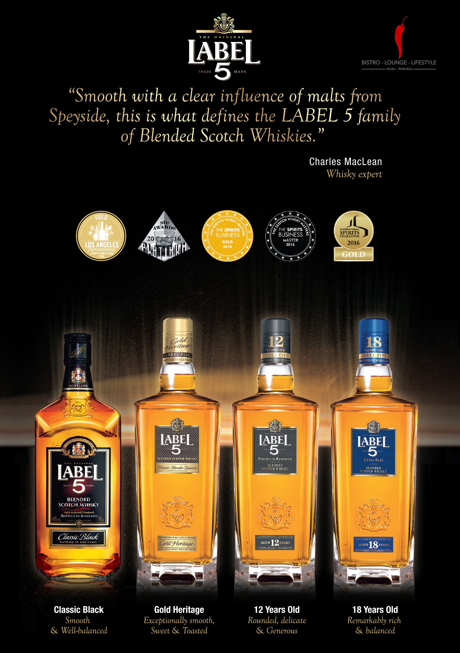Label 5 | Scotch Whisky LABEL 5 Classic Black is an elegant and smooth Blended Scotch Whisky distilled and aged in Scotland. Welcome to Scotland OUR HERITAGE Produced, aged and bottled in Scotland, LABEL 5 is a marriage of the finest malt and grain whiskies. Our Cocktails OUR RECIPEs
