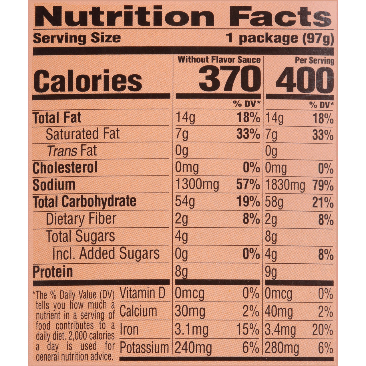 42 ramen noodles chicken flavor nutrition label