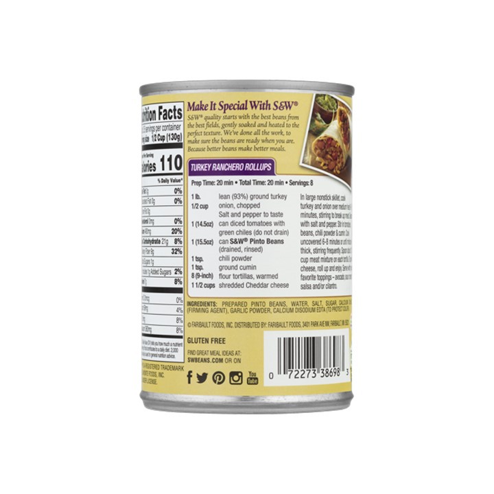 H-E-B Pinto Beans - Shop Canned & Dried Food at H-E-B Nutrition Facts HEB PINTO BEANS 2LB about 26 Serving Per Container Amount Per Serving % Daily Value* we recommend H‑E‑B Pinto Beans, 4 lb $4.32 each ($0.07/oz) Add to list Add to cart Casserole Pinto Beans, 32 oz $3.08 each ($0.10/oz) Add to list Add to cart Hill Country Fare Pinto Beans, 64 oz $3.77 each ($0.06/oz) Add to list Add to cart Simple Truth Organic - Pinto Beans (from label) calories, carbs ... Find calories, carbs, and nutritional contents for Simple Truth Organic - Pinto Beans (from label) and over 2,000,000 other foods at MyFitnessPal ... Simple Truth Organic Simple Truth Organic - Pinto Beans (from label) Serving Size : 0.5 cups. 110 Cal. 75 % 21g Carbs. 0 %--Fat. 25 % 7g Protein. Track macros, calories, and more with MyFitnessPal ... Make High-Protein, Fiber-Rich Pinto Beans Your Diet Staple Total fat: A half-cup serving of pinto beans contains less than 1 gram of fat. Carbohydrates: A half-cup serving of cooked pinto beans contains 22 grams of carbohydrates, with 7.5 grams of fiber and 0 grams of sugar. Protein: A half-cup serving of pinto beans has 7.5 grams of plant-based protein. EWG's Food Scores | Always Save Pinto Beans Check out the food score for Always Save Pinto Beans from EWG's Food Scores! EWG's Food Scores rates more than 80,000 foods in a simple, searchable online format to empower you to shop smarter and eat healthier. ... This value is much lower than what the FDA requires be listed on food labels -- 2400 mg. Americans average 3,400 mg of sodium a ...