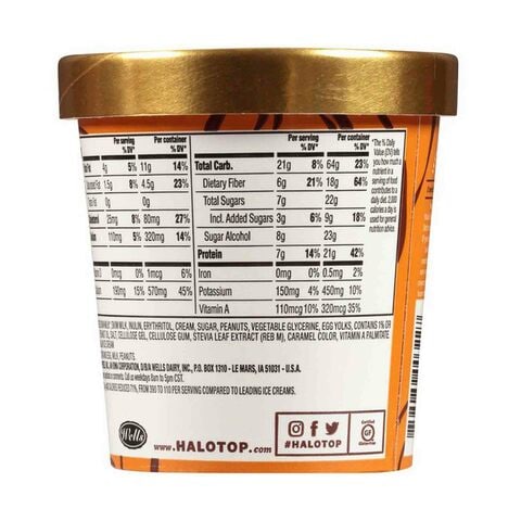 Halo Top Peanut Butter Cup Ice Cream - Shop Ice Cream & Treats at H-E-B Keep frozen. Ingredients Ultra Filtered Skim Milk (Not an Ingredient in Regular Ice Cream), Skim Milk, Inulin, Erythritol, Cream, Sugar, Peanuts, Vegetable Glycerine, Egg Yolks, Contains 1% or Less than of Natural Flavor, Peanut Oil, Salt, Cellulose Gel, Cellulose Gum, Stevia Leaf Extract (Red M), Caramel Color, Vitamin A Palmitate. Safety warning Halo Top Peanut Butter Ice Cream Sticks Review - Diets and Calories Looking at the ingredients, they're not the same as the Halo Top Peanut Butter Cup ice cream. The ice lollies have more peanut butter and while both the lollies and the ice cream use the sweetener stevia, the ice lollies also have sugar and maltodextrin, while the ice cream adds sugar and erythritol. They're a reasonable source of protein and fibre with 4g of fibre per bar and 5.3g of protein. Halo Top Ice Cream Peanut Butter Cup Light - Giant Food Lower in Calories. Lower in Fat. Here at Halo Top, we believe frozen treats should feel good and taste good. That's why we set out to make a light ice cream that actually tastes like ice cream. Our Peanut Butter Cup light ice cream delivers peanut butter and chocolate deliciousness at only 330 calories per pint, and 100% flavor. Instagram ... Halo Top NonDairy Peanut Bu - Online Groceries | Albertsons Shop Halo Top NonDairy Peanut Butter Cup Pint - 16 Fl. Oz. from Albertsons. ... Rich peanut butter and chocolate pair together deliciously in this non-dairy frozen dessert that's only 330 calories per pint. Even better, it also boasts 12 grams of protein per pint! ... Consult Product label for the most current and accurate information.