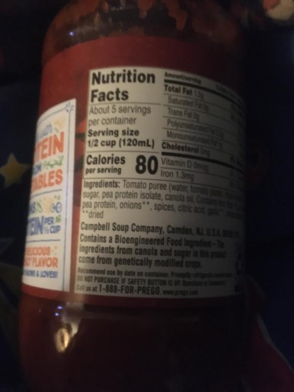 Prego sauce nutrition label