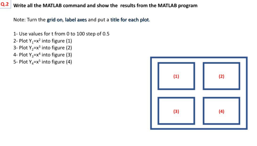 Q.2 Write all the MATLAB command and show the results | Chegg.com