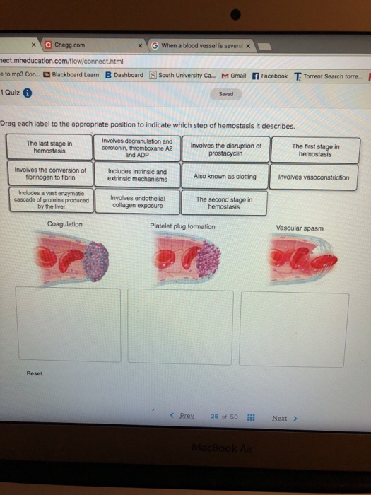 43 drag each label to the appropriate position to indicate which step of hemostasis it describes.