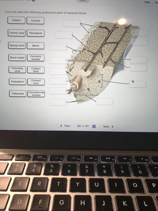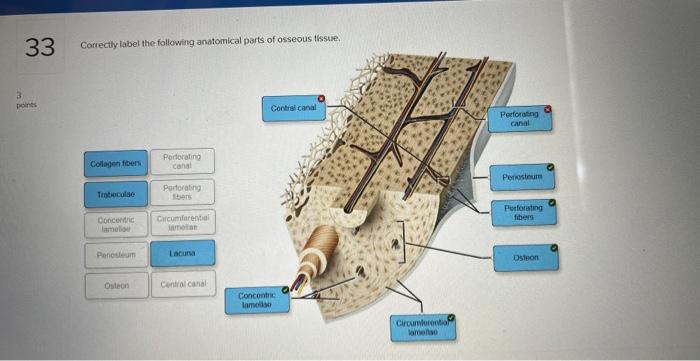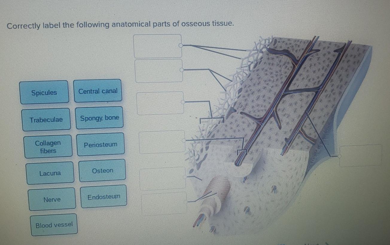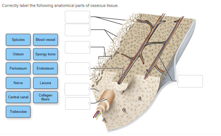 45 correctly label the following anatomical parts of osseous tissue.